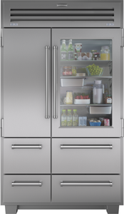 With over 30 cu. ft. of storage, the PRO 48holds a breathtaking assortment of foods, and keeps it all as fresh as the day it was picked or caught. Dual refrigeration, with two compressors and three evaporators, provides just the right environment for fresh or frozen foods, and prevents odor transfer. A magnetic door seal system keeps food fresh or frozen even if your power goes out. It's the biggest, boldest, freshest Sub-Zero of all.