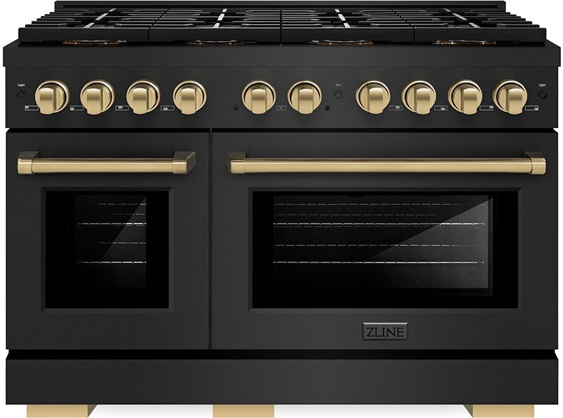 Luxury isn’t meant to be left desired—it’s meant to be attainable. The ZLINE Autograph Edition 48 in. 6.7 cu. ft. Paramount Gas Range with 8 Burner DuoPro™ Cooktop and Dual Ovens in Black Stainless Steel and Champagne Bronze Accents (PSGRBZ-48-CB) features a high-powered gas cooktop with 8 hand-crafted Italian dual-ring brass burners and a versatile gas convection oven allowing you to master every meal. Double your cooking power on every burner with a DuoPro™ Cooktop that delivers ultimate flame control flexibility and unprecedented culinary confidence.Read More